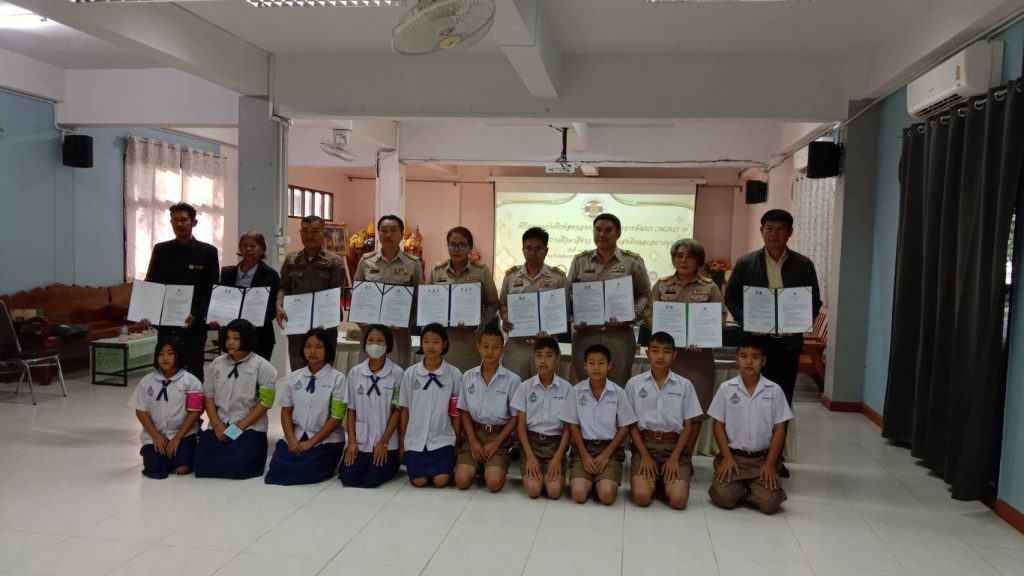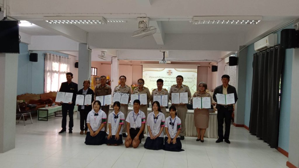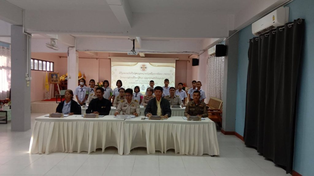 บันทึกข้อตกลงความร่วมมือ (MOU) โครงการสถานศึกษาสีขาว ปลอดยาเสพติดและอบายมุข ณ โรงเรียนบ้านสมอทอง
