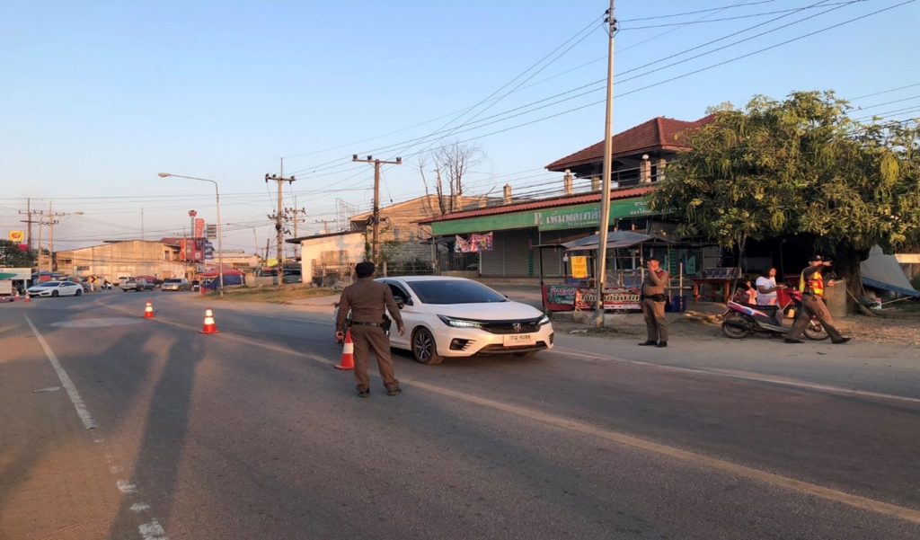 พ.ต.ท.ปพน โสพัฒน์ รอง ผกก.ป.สภ.ห้วยคต พร้อมกำลังเจ้าหน้าที่ตำรวจ รวม 7 นาย ตั้งจุดตรวจกวดขันวินัยจราจร เพื่อลดอุบัติเหตุในช่วงเทศกาลปีใหม่ 2568