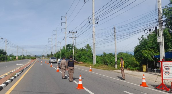 พ.ต.ท.พูลศักดิ์ ฤทธิเดช สวป.สภ.ห้วยคต พร้อมข้าราชการตำรวจ รวม 7 นาย ตั้งจุดกวดขันวินัยจราจร