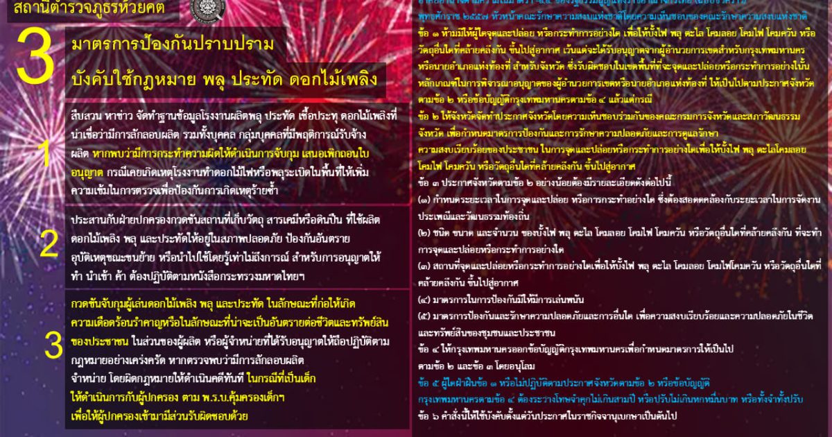 มาตรการป้องกันปราบปรามบังคับใช้กฎหมาย พลุ ปะทัด ดอกไม้เพลิง