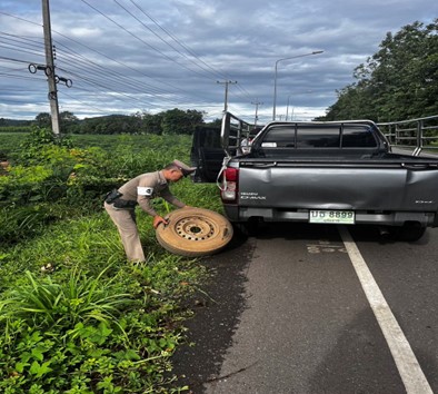 ร.ต.อ.คมศักดิ์ สารบรรณ รอง สวป.สภ.ห้วยคต ได้ให้ความช่วยเหลือประชาชน รถยนต์ยางแตก