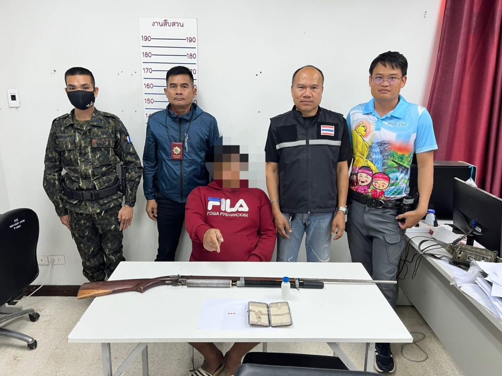 2.อาวุธปืนยาวแบบไทยประดิษฐ์ (ปืนอัดลม) ไม่มีหมายเลขทะเบียน จำนวน 1 กระบอก