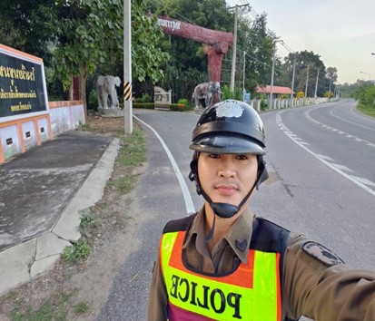 ส.ต.ต.อาทิตย์ เสายา ผบ.หมู่(ป.)สภ.ห้วยคต อำนวยความสะดวกจัดการจราจรเพื่อป้องกันอุบัติเหตุ บริเวณด้านหน้าทางเข้าโรงเรียนวัดสุวรรณบรรพต